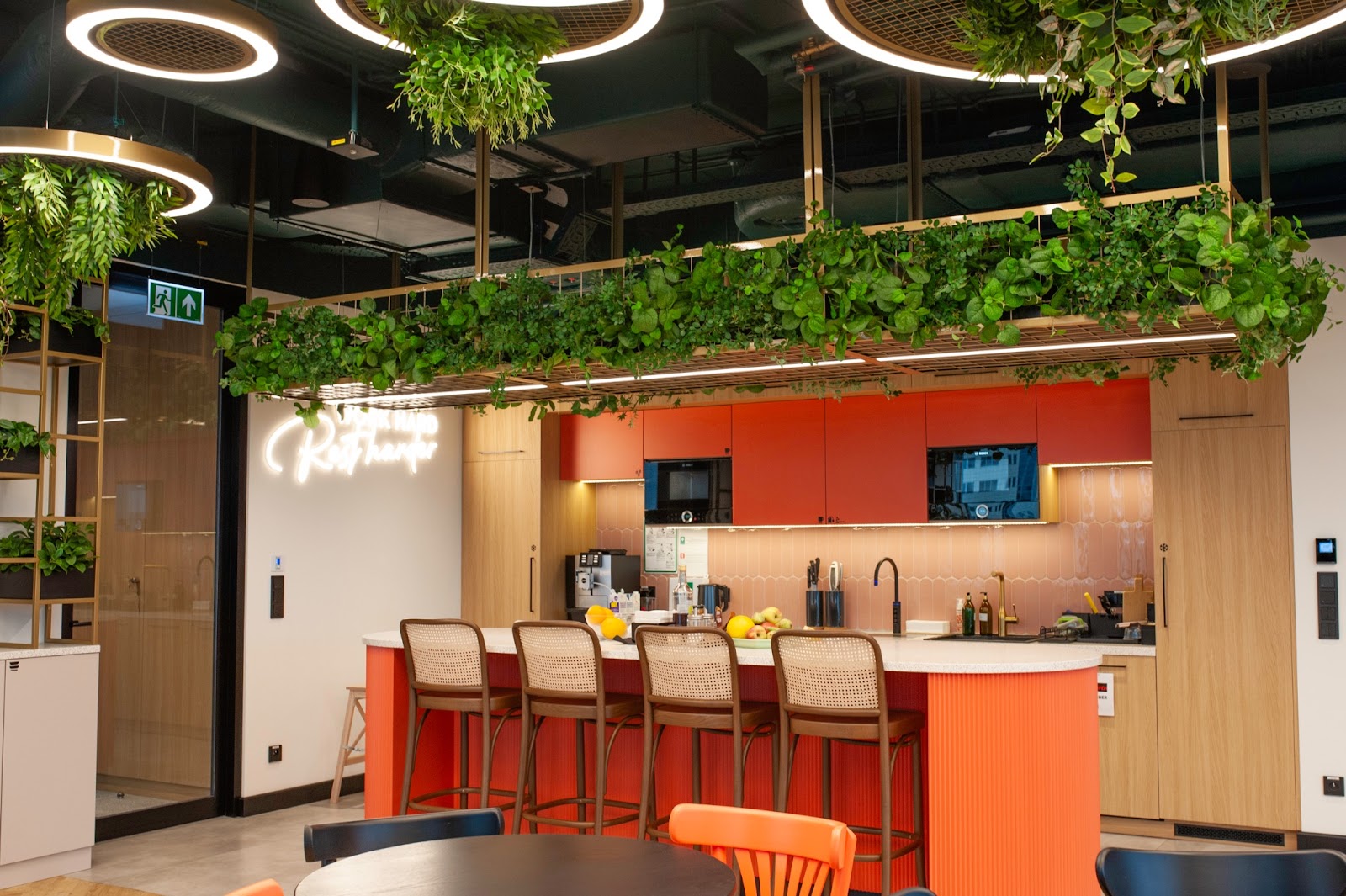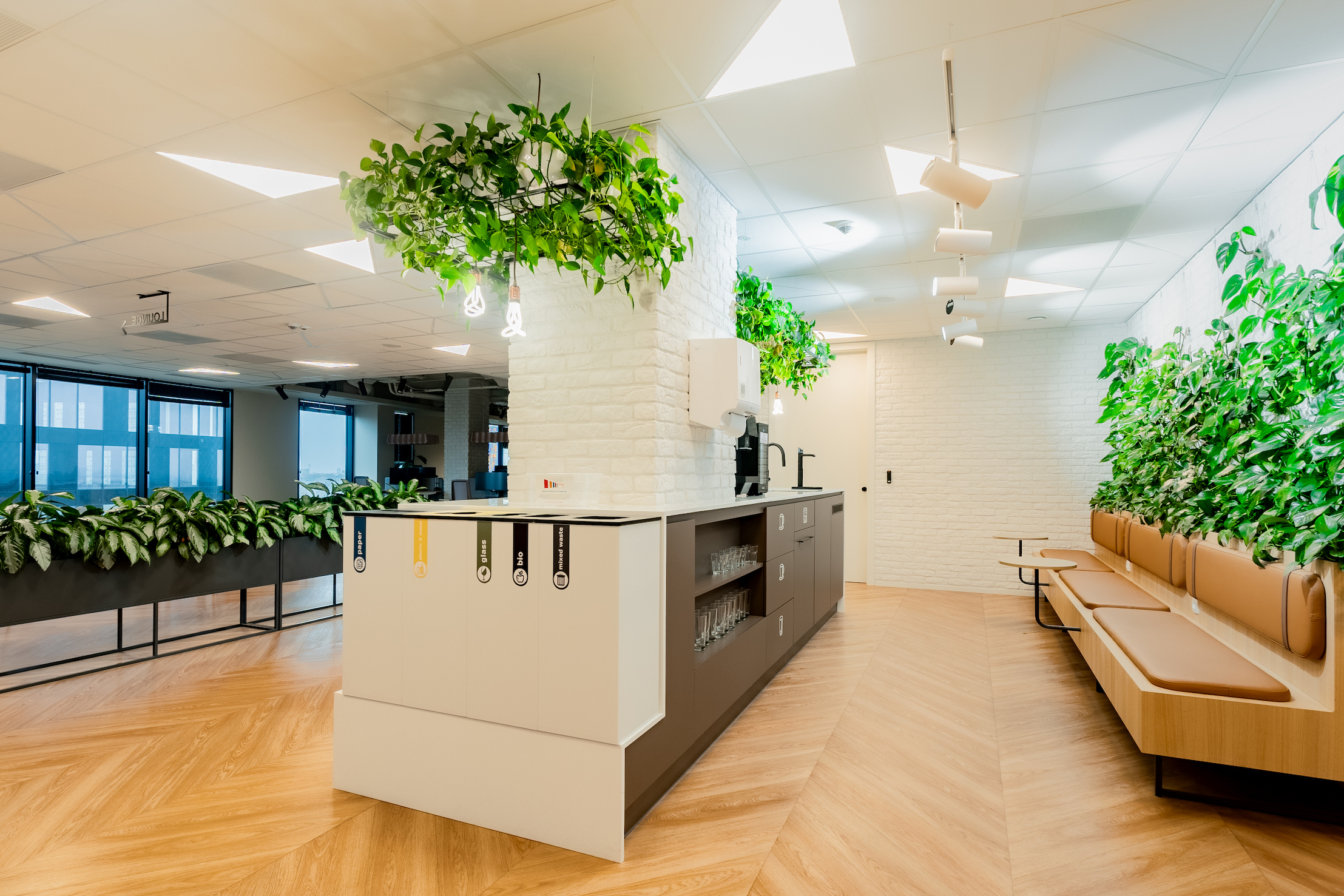 Aranżując zieleń w biurze nie można zapomnieć o kuchni - przestrzeni, która powinna być nie tylko funkcjonalna, ale też przyjazna i pełna życia.