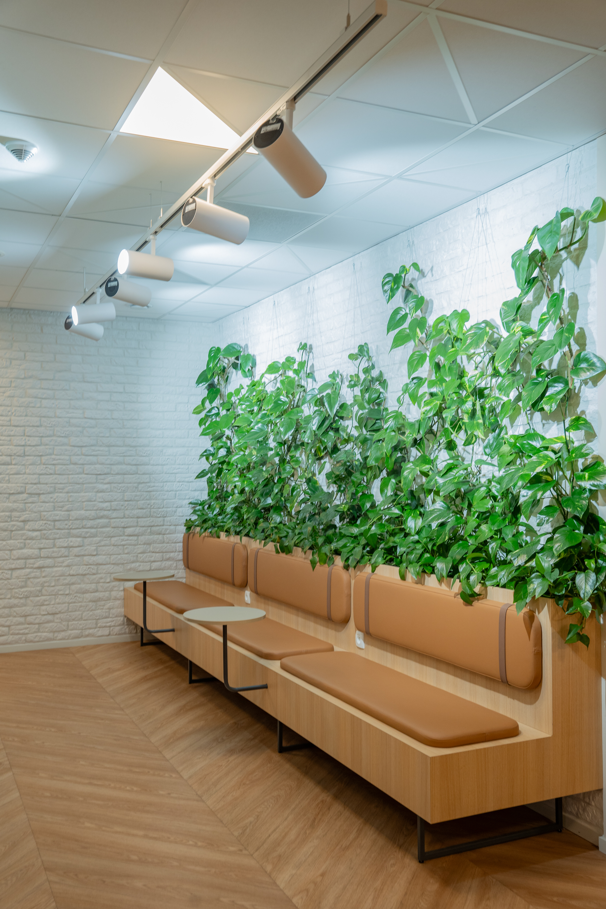 W większych kantynach świetnie sprawdzają się duże donice z wysokimi roślinami – ustawione przy stołach lub wzdłuż ścian, wizualnie porządkują przestrzeń i dodają jej przytulności. Zielone przegrody natomiast mogą pełnić funkcję subtelnych ekranów akustycznych, a przy tym dzielić przestrzeń bez budowania "sztywnych" ścian.