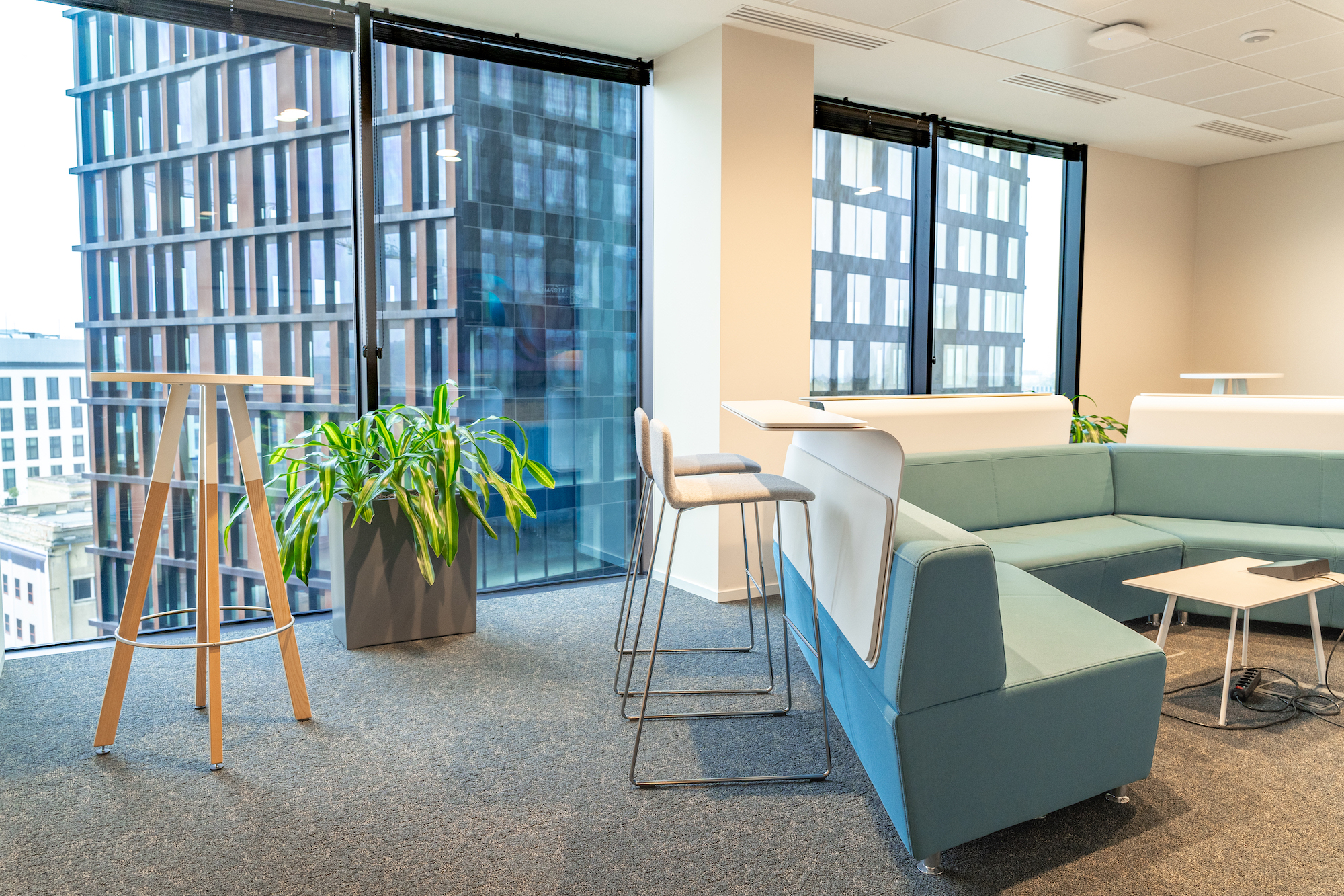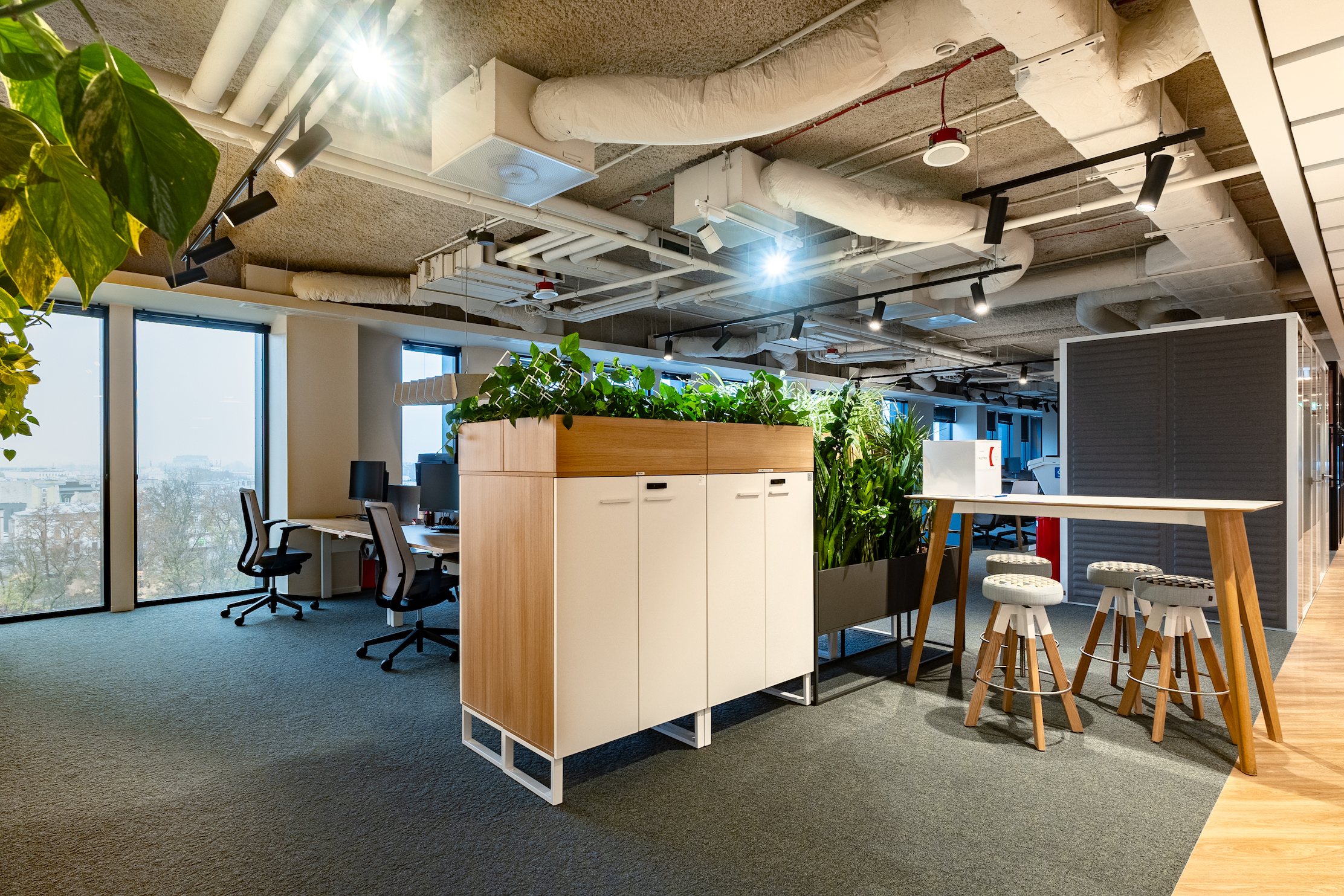 Część istniejących roślin przenieśliśmy z poprzednich lokalizacji. Te, które nie nadawały się do nowej przestrzeni, zostały rozdane pracownikom w ramach specjalnej akcji pt.: “Przygarnij kwiatka do domu”.