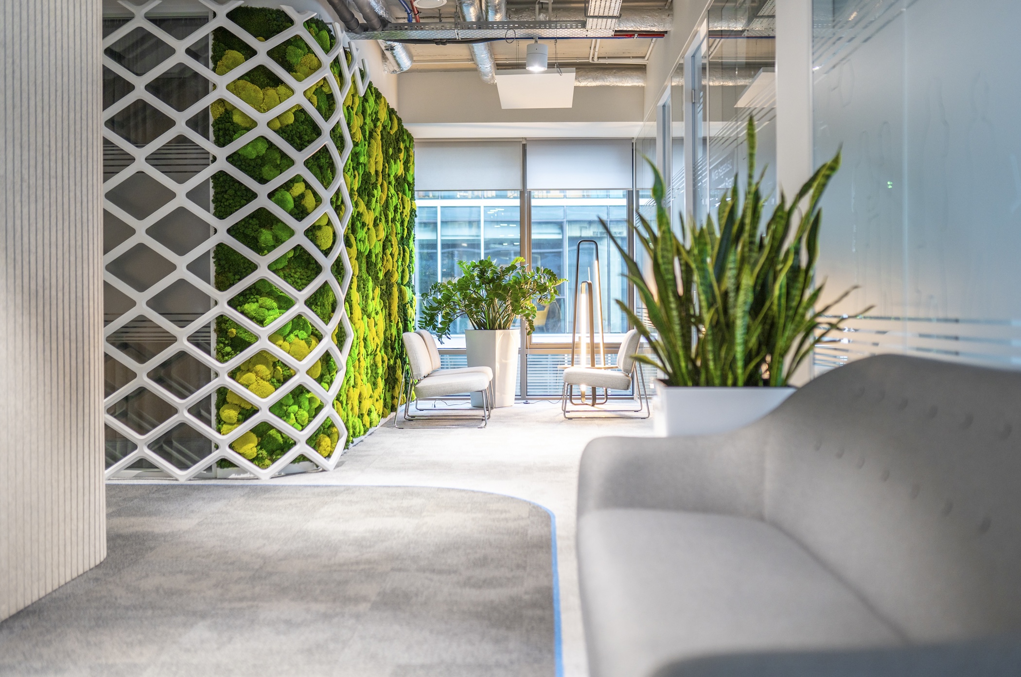 W biurze Thyssenkrupp zieleń towarzyszy pracownikom każdego dnia. To przykład projektu, w którym rośliny stają się częścią życia biura, dojrzewając razem z nim.