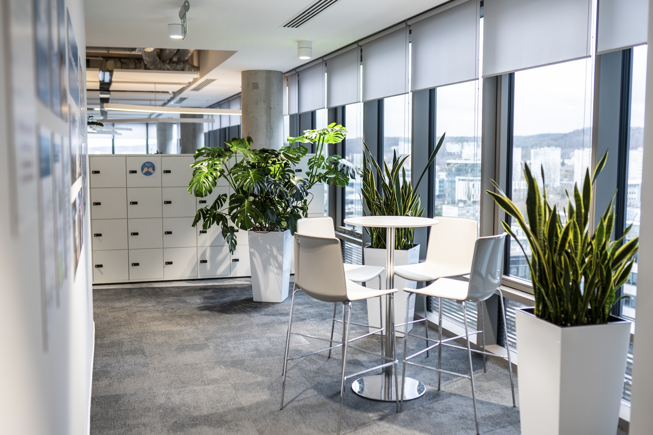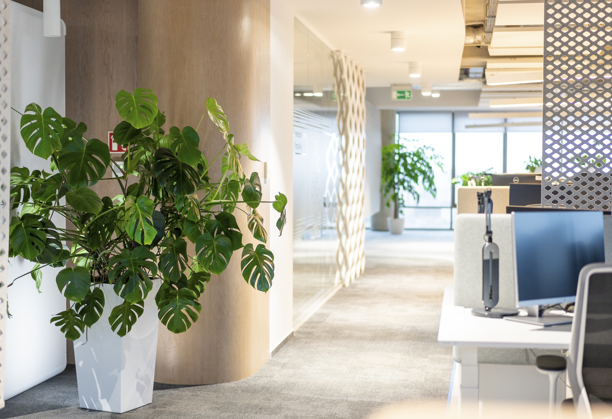 - pojedyncze małe doniczki pomiędzy stanowiskami pracy w open space.