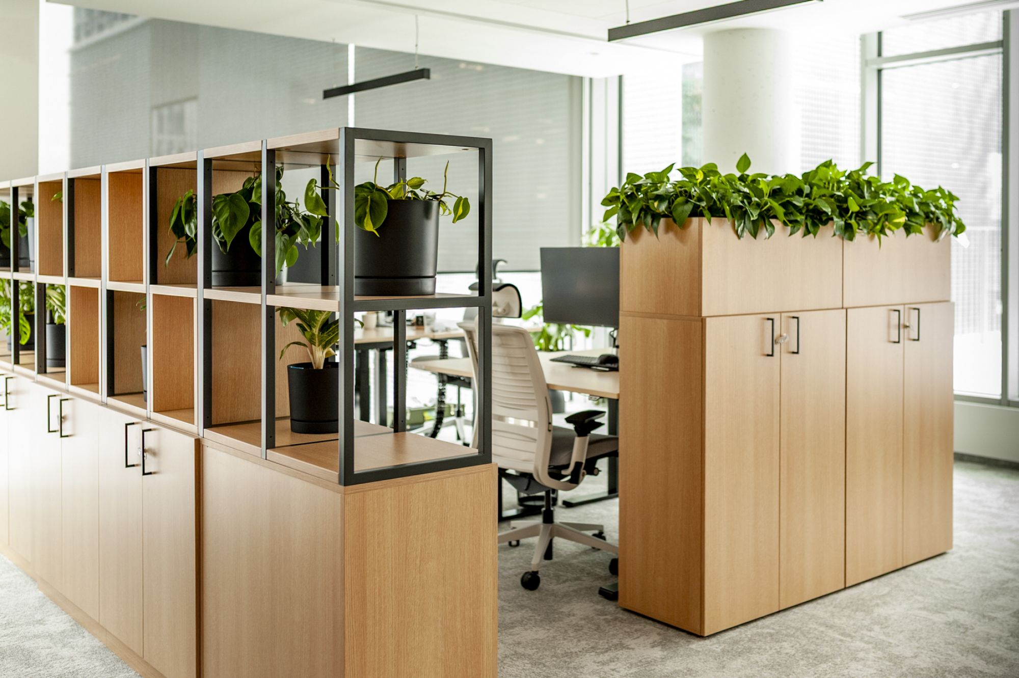 Równie świadomy był dobór gatunków - np. w lockerach, które zwykle znajdują się dalej od okien, pojawiły się przede wszystkim Zamiokulkasy, Monstery Monkey i Epipremnum, czyli rośliny, które dobrze sprawdzające się w biurowych warunkach.